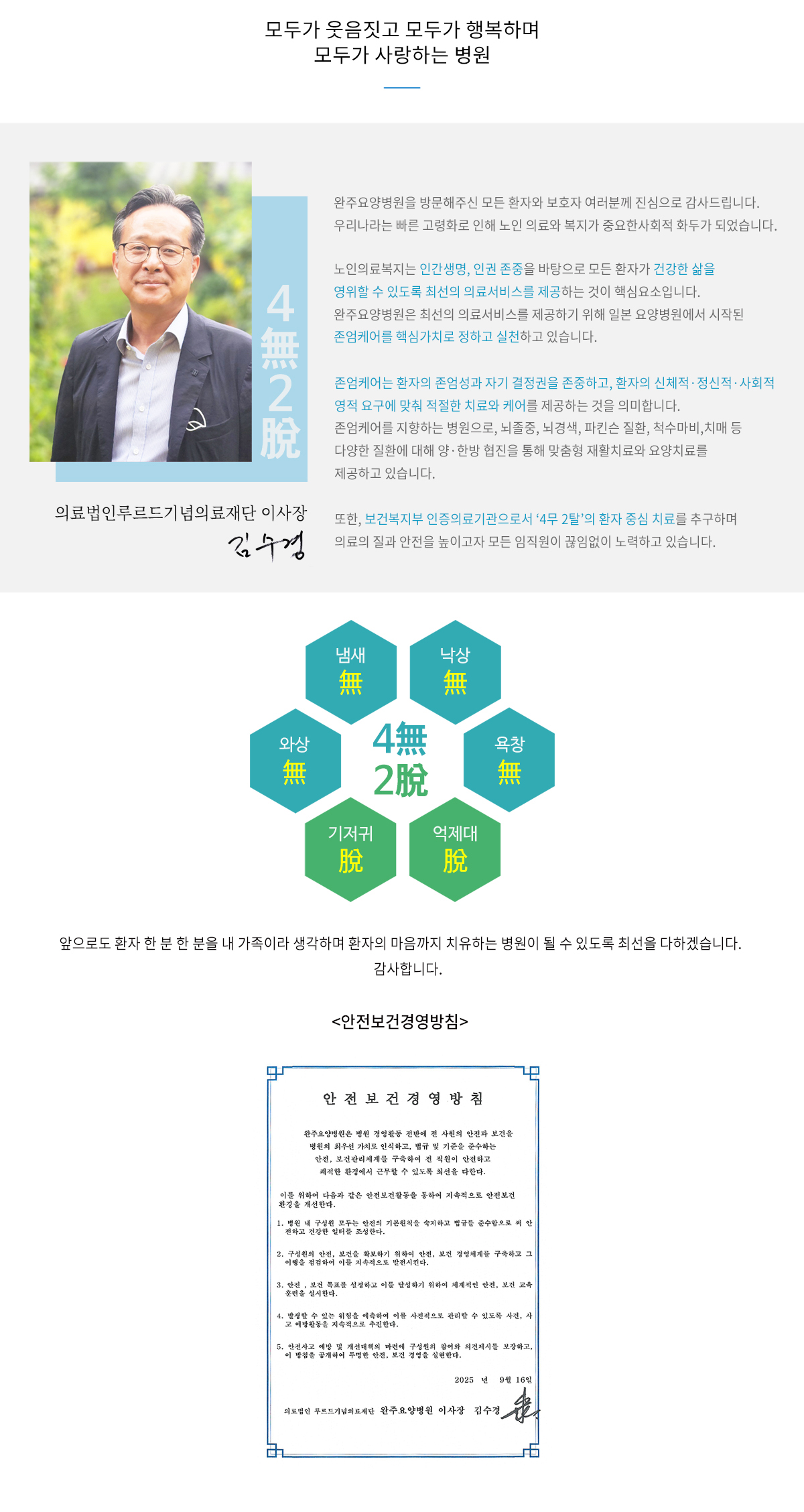 완주요양병원 / 사업자번호 402-82-20135 (대표:김수경) / 전북 완주군 봉동읍 둔산3로 31-5 / TEL. 063-260-8300 / FAX. 063-263-0009