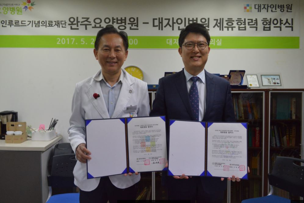 <div>2017년 5월 23일 전주 대자인 병원과 제휴 협력 협약식을 가졌습니다.</div><div>보다 발전하고 나은 서비스를 제공하는 완주요양병원이 되겠습니다.</div>
