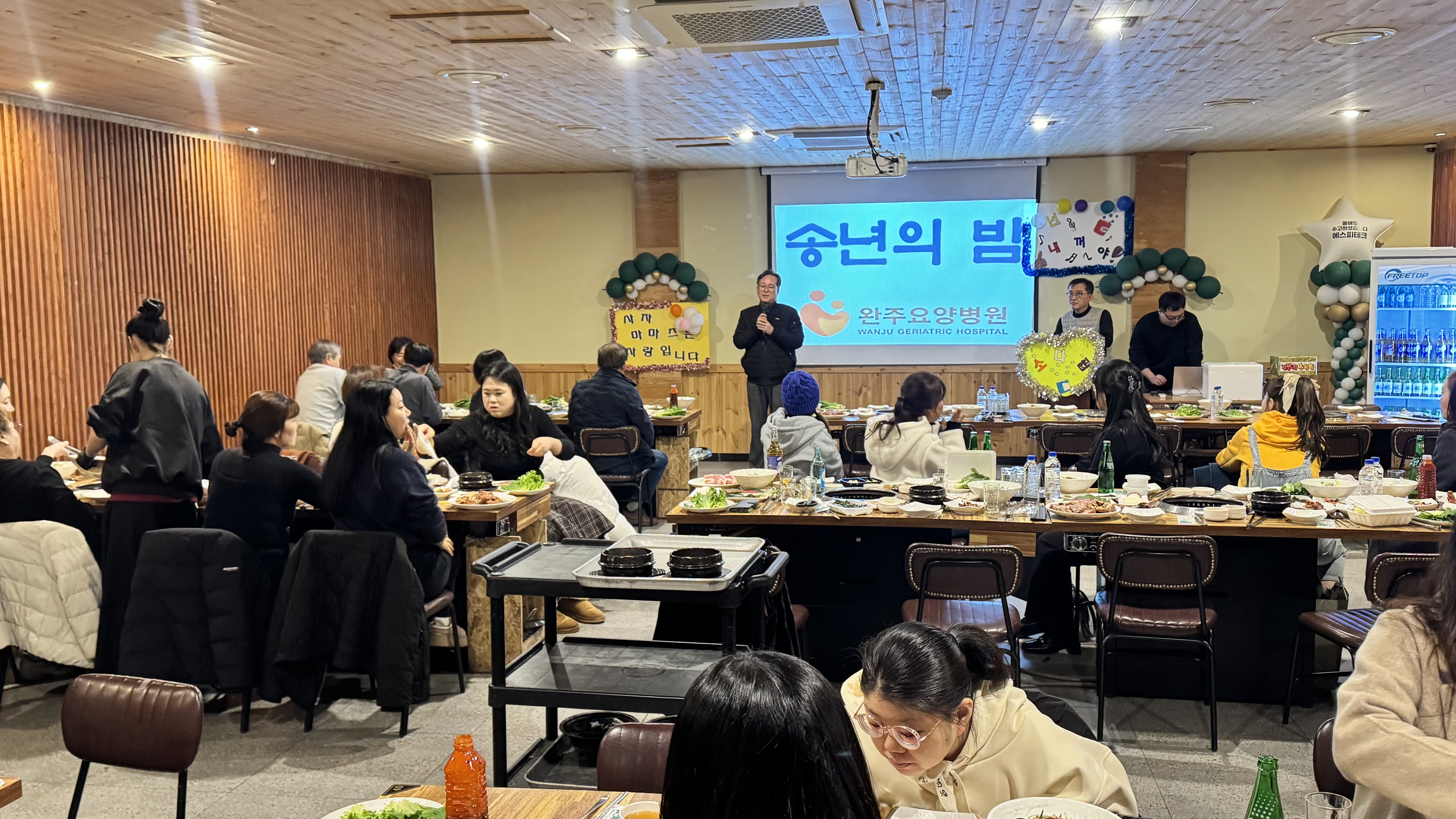 12월30일 완주요양병원을 위해 수고해주신 임직원분들과 함께 지난 2025년 한해 소중한 시간들을 되돌아보는 송년의 밤을 진행하였습니다.